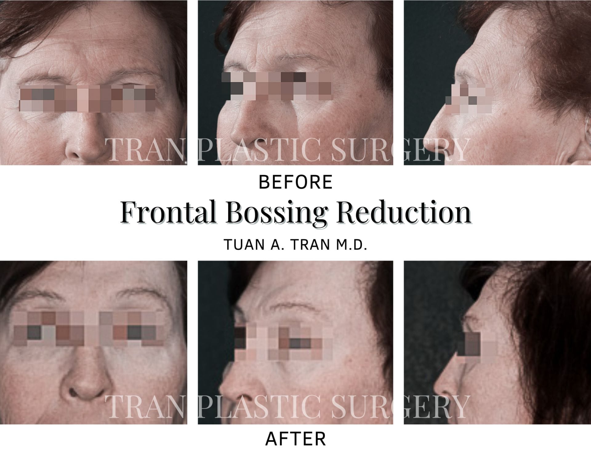 Facial feminization is not a single procedure—it is a customized plan of surgical techniques tailored to the patient’s unique facial structure. At Tran Plastic Surgery, every procedure is performed under general anesthesia with the highest standards of safety and precision.